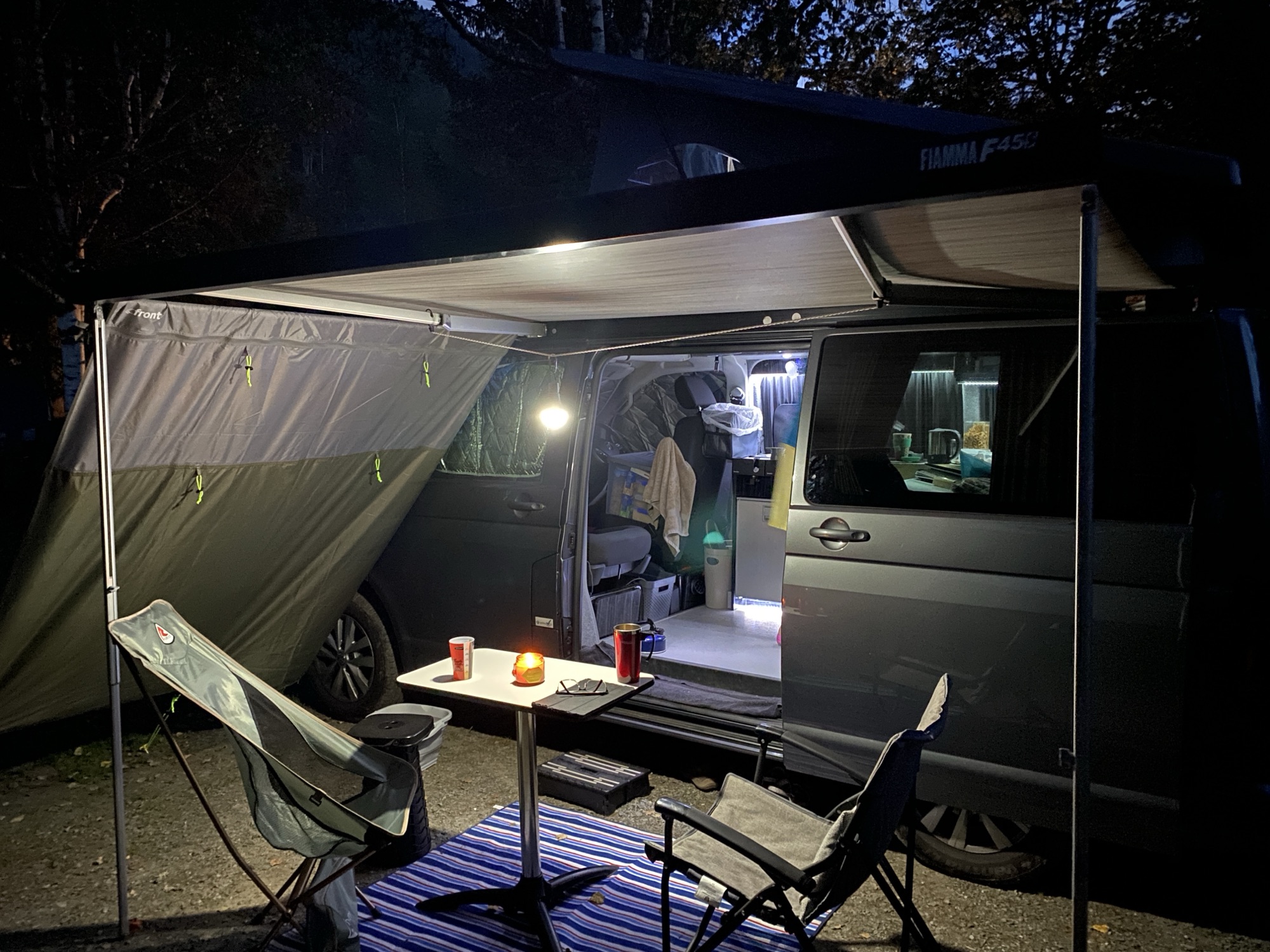 It’s popularity means they close down the booking system in the summer and you have to turn up early and wait while a man on a bike cycles around and sees what pitches have been vacated. There is a German couple ahead of us and several other vans turn up whilst we are waiting but after an hour or so it is declared that we can all be accommodated. And our pitch is a very nice one, not too far from the facilities and perfect to set up home for five or six days.