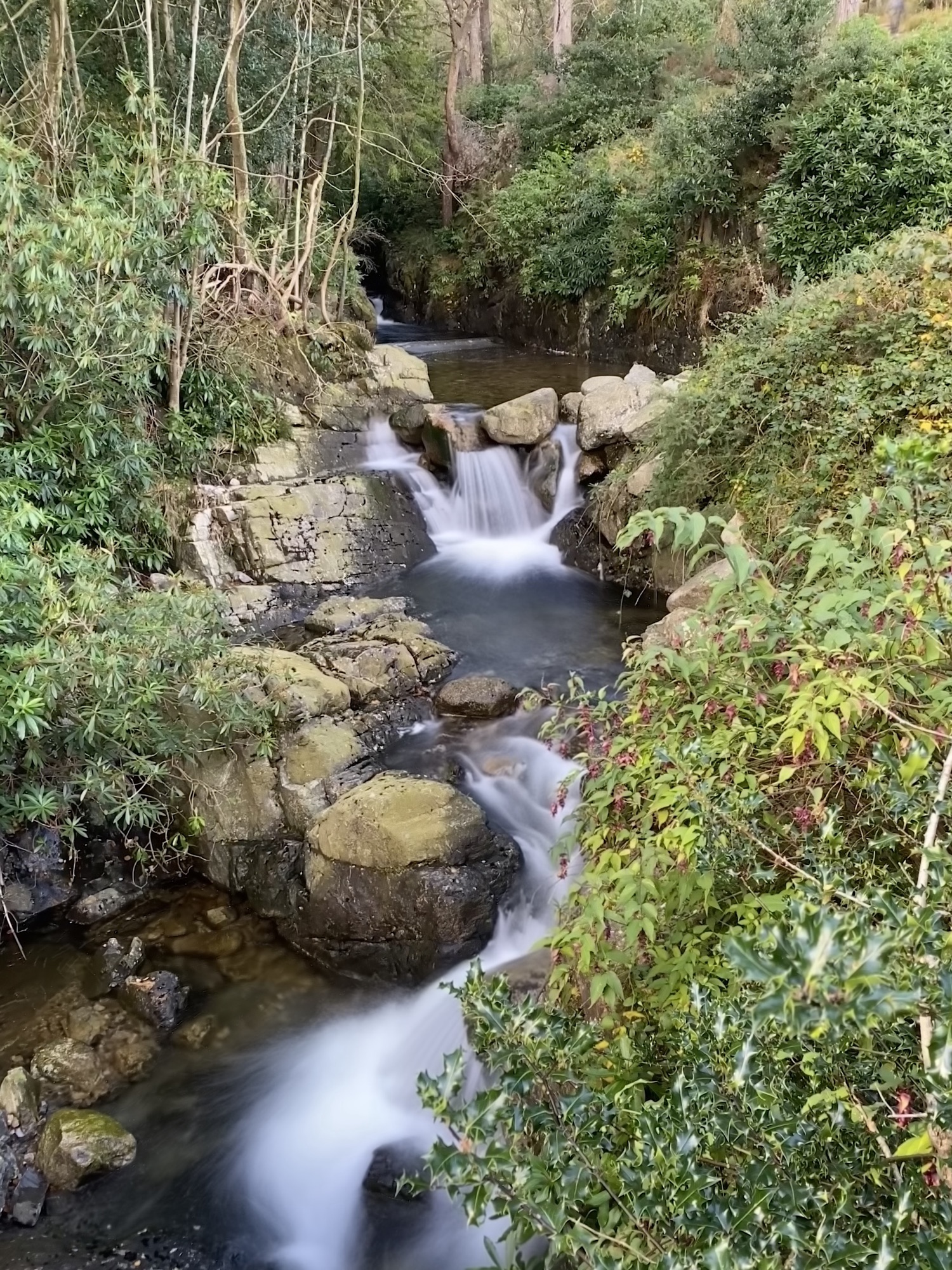The path joins a forest road and crosses the river again at Glen River Bridge. These bridges were built by the Annesley Family, who owned and managed the land here from the 1700’s until it was bought by the National Trust in the 1990’s. I continue upwards with the river now back on my left side, still very picturesque with smaller cascades now and a gentler pace.