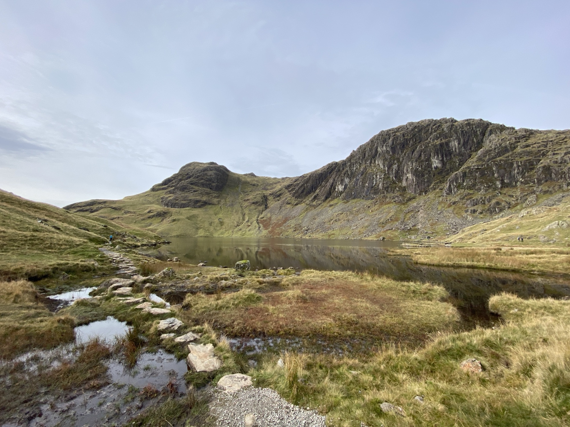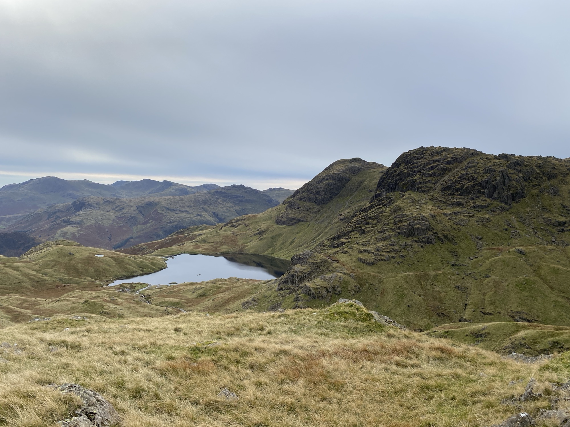 The path up Stickle Ghyll is familiar but this time instead of crossing the bridge I carry along the footpath that climbs up the left side of the Ghyll. Having now walked both paths I can say that in my opinion, the western, left hand side path up Stickle Ghyll is the easiest. There is a good path all the way to the tarn, no need to cross the Ghyll and only one small rock scramble which is after the point the Ghyll has to be crossed from the other side anyway.