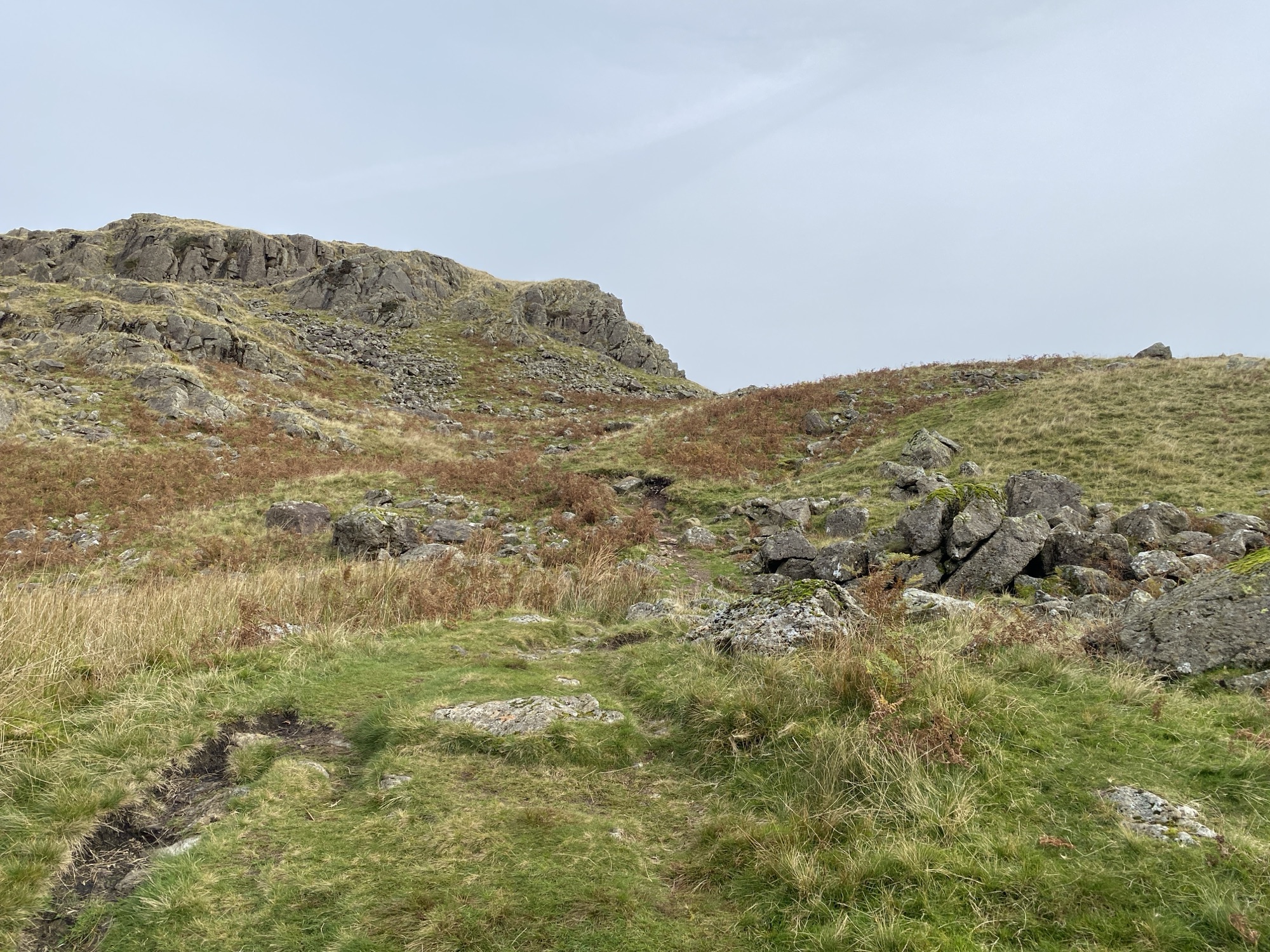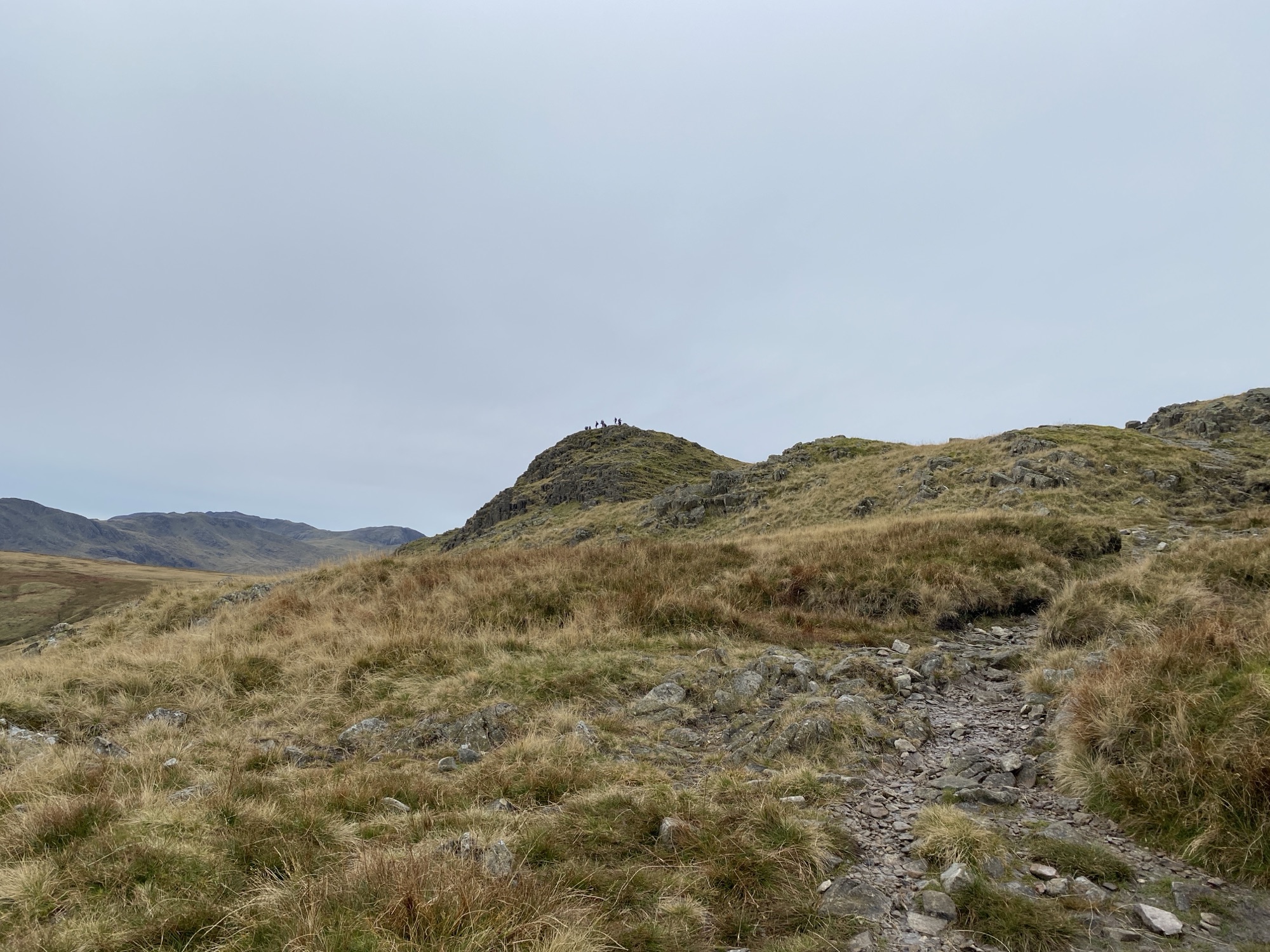 I part company with Stickle Tarn at the stepping stones at the far end and head off across boggy ground towards my first hill of the day, Blea Rigg. A few fell runners are out and a group, red faced and legs covered in mud race past me on the way down to the tarn.