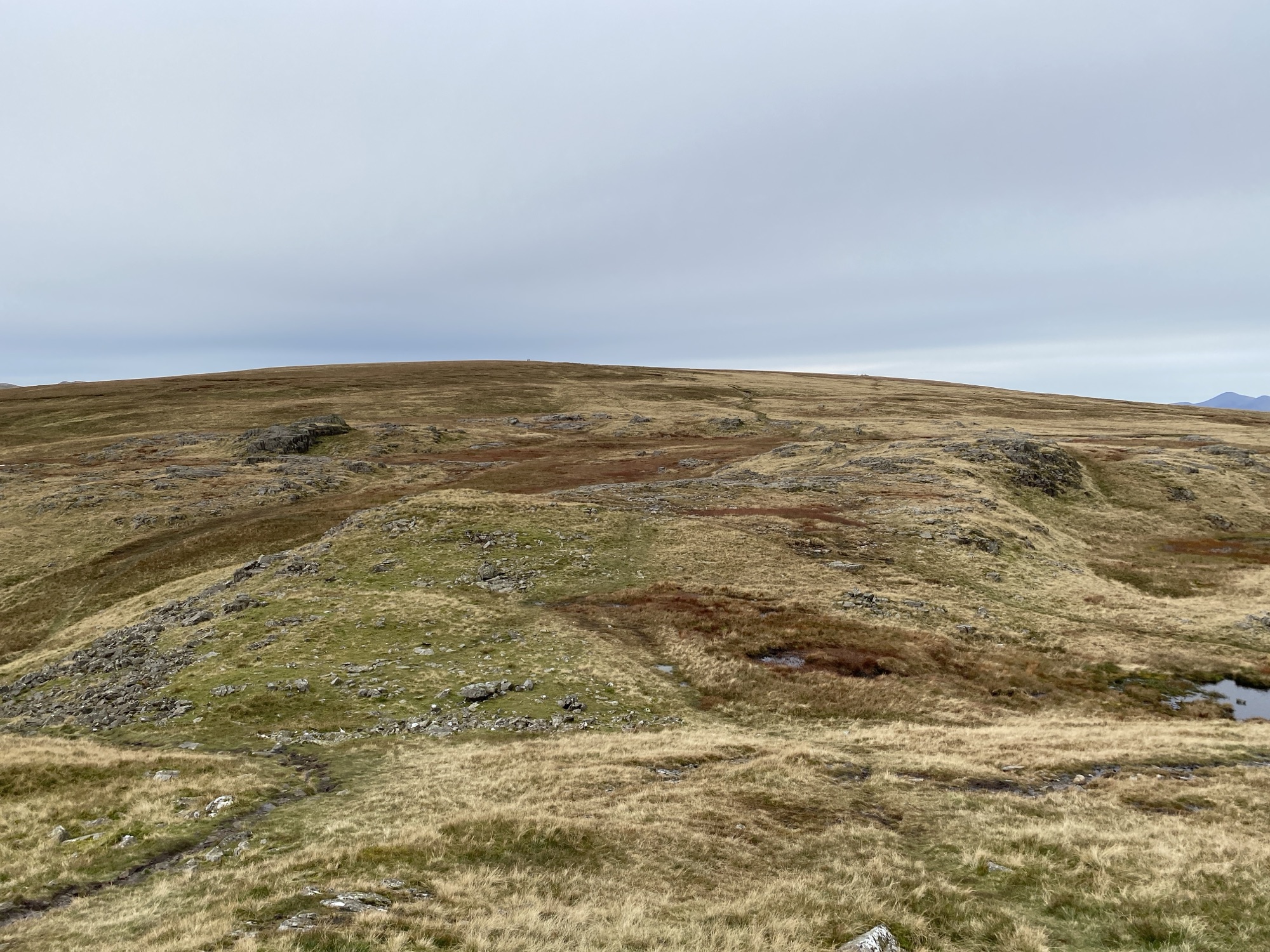 Leaving Blea Rigg I retrace my steps for a short distance before branching off onto a faint path that follows the bumpy ridge to Sergeant Man. The path is often indistinct and attention is needed to follow it in the boggy, rocky terrain and although Sergeant Man can be seen in the distance I’m grateful for GPS technology to keep me on track.