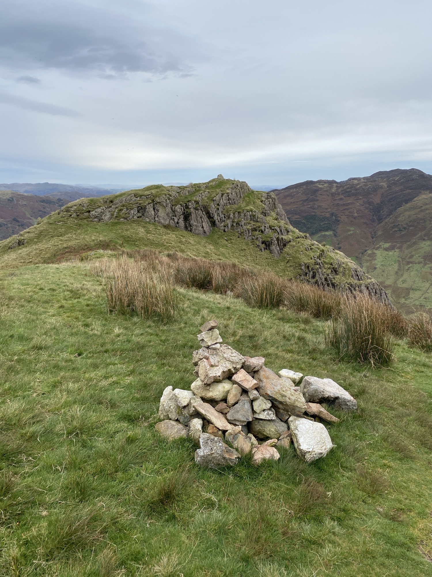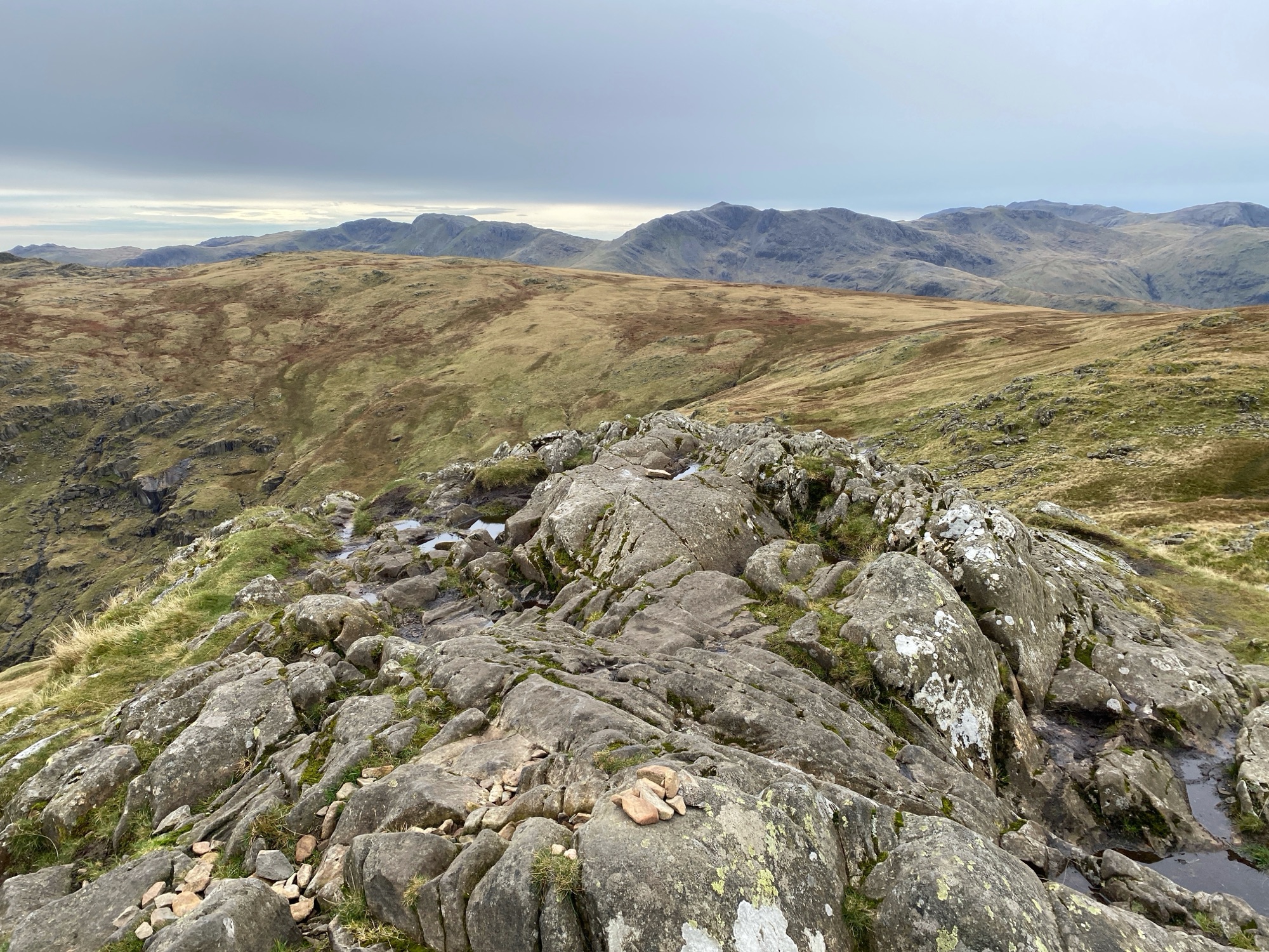 On approach, Sergeant Man has the look of Pike of Stickle about it, rounded and poking above the surrounding ground. There is no scramble up though and the top is broader and not as airily exposed, merging into the moorland with just a short drop on its northern side.