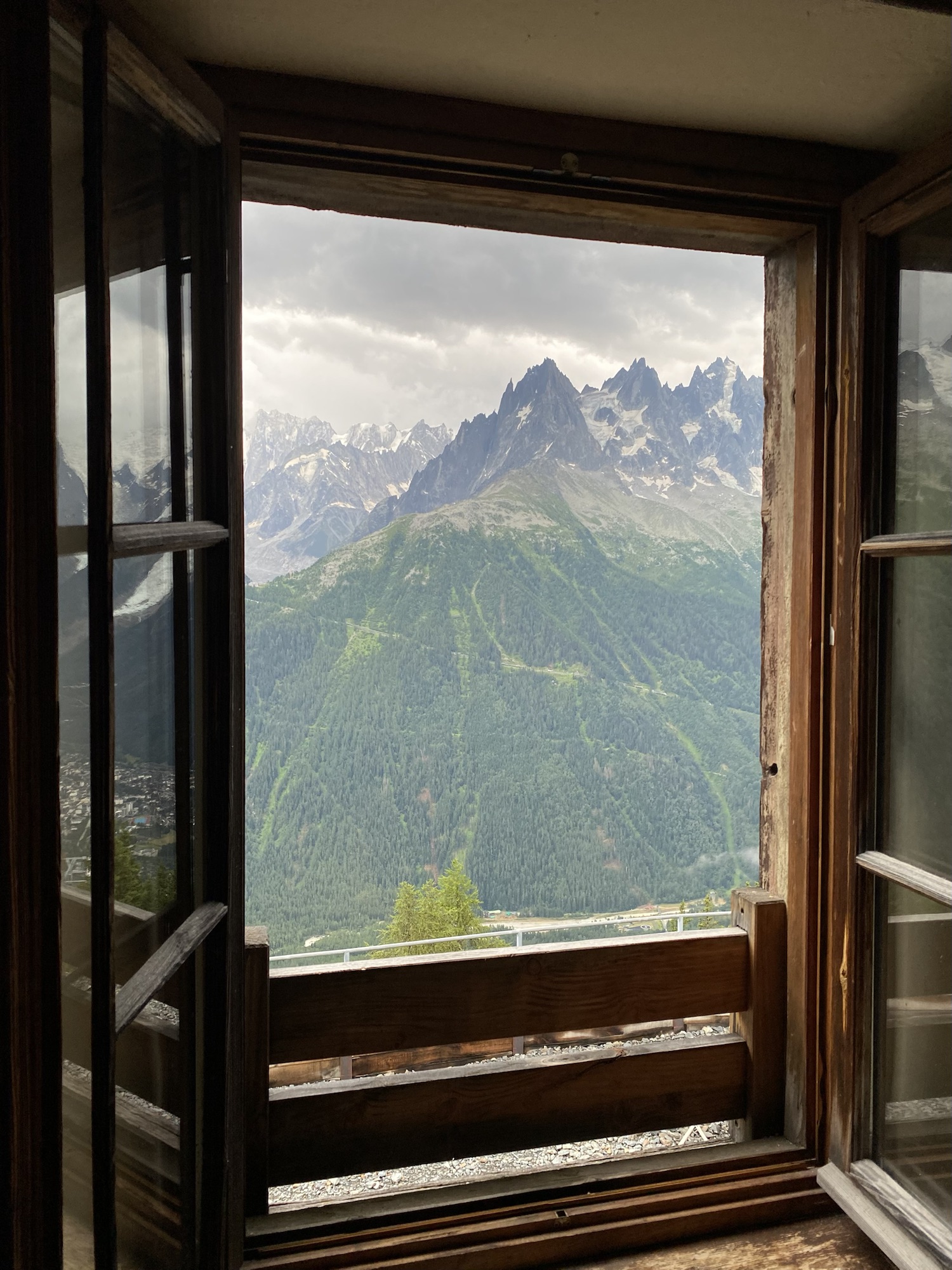 The best laid scheme of today was to finish our Tour du Mont Blanc on top of Le Brévent and then get the cable car down into Chamonix to celebrate. It started to go awry with the weather forecast of last night and was confirmed in the early hours when the storm rolled in, wind whistling through the gaps in the old wooden frames and rain sweeping across the panes.