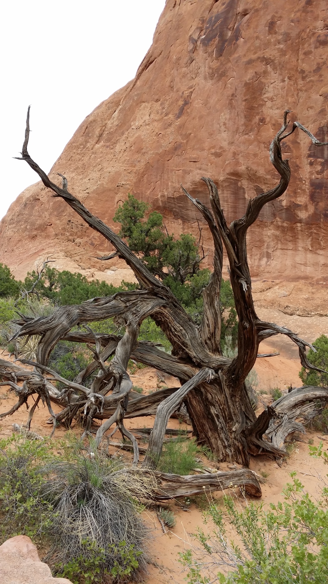 The Arches National Park is like no place I have ever walked in before. Set high on the desert plateau of Utah, there is little vegetation and the sparse trees are stunted and gnarled by the harsh environment. It’s a raw and exposed place, baking in the day and freezing at night. It is literally the Wild West. What draws visitors to the park are the natural sandstone arches, thousands of them. Fifteen million years of erosion created them and we’re here today to walk among them. It’s as different a landscape to the UK as chalk is to cheese.