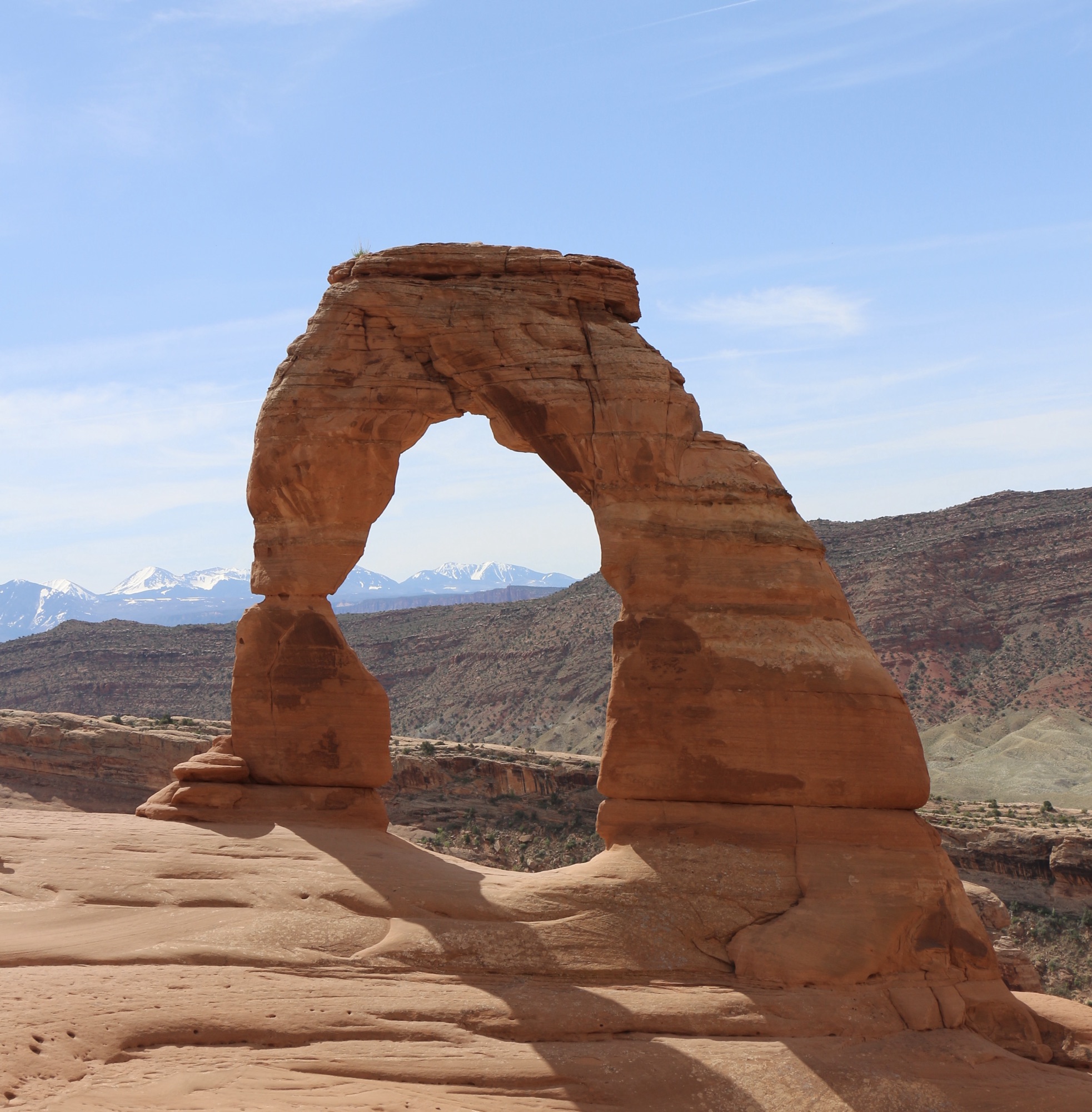 Mish and I sit ourselves down, have a drink and take in the view. All around is sandstone and scrub and in the far distance the snow capped La Sal mountains complete the Wild West picture. There is a united nations queue of people waiting to get pictures standing under the arch but Mish and I don’t think the United Kingdom needs representation at this particular event so watch as various poses and antics are acted out.