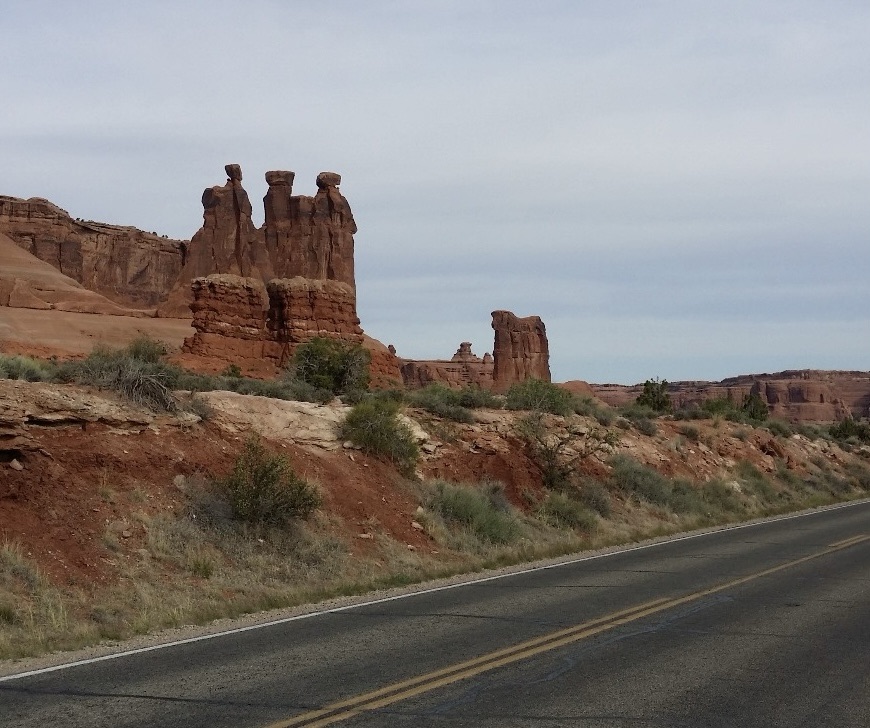 It’s a truism that America is big, but just how vast and desolate much of it is has to be seen to be believed and our journey to the Arches is an experience in itself. The Americans like to name their roads, nothing boring like the M6 or B6412. US Highway 191 is part of the Grand Army Of The Republic Highway. And driving along it is an introduction to the remote emptiness of much of this land. Mile after mile of arrow straight roads crossing what is known as the Colorado plateau with brush-land stretching far into the distance to a wall of cliffs. Big skies above us and a limitless horizon ahead of us.